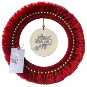 Couronne macramé 100% laine avec son médaillon oiseau & » la vie est belle »